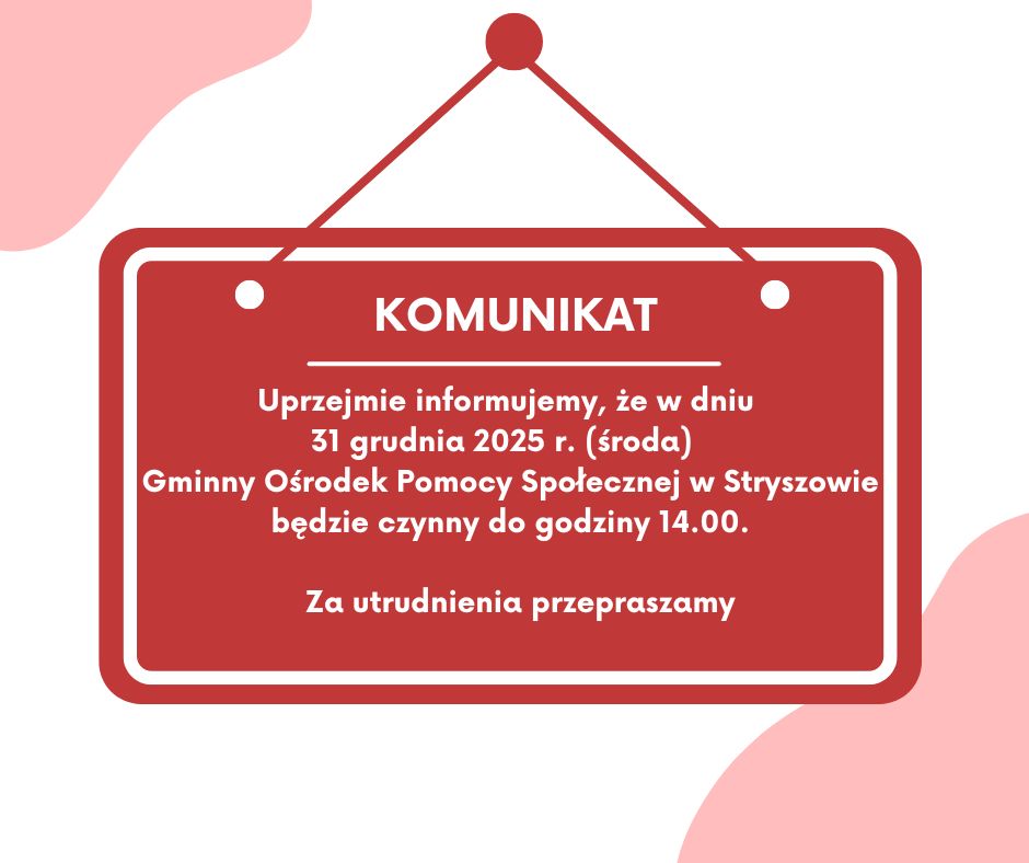 Komunikat o godzinach pracy w dniu 31.12.2025 r.